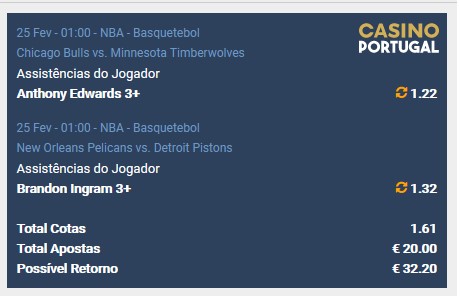 Atenção!! a aposta consiste em Edwards fazer 3 ou mais assistências e Ingram fazer 3 ou mais assistências.