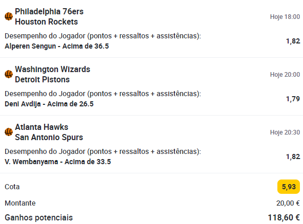 Aposta em Desempenhos Individuais – 15 Janeiro 2024