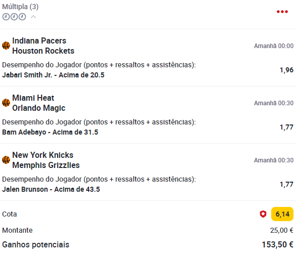 Aposta Múltipla em Desempenhos Individuais – 6 Fevereiro 2024