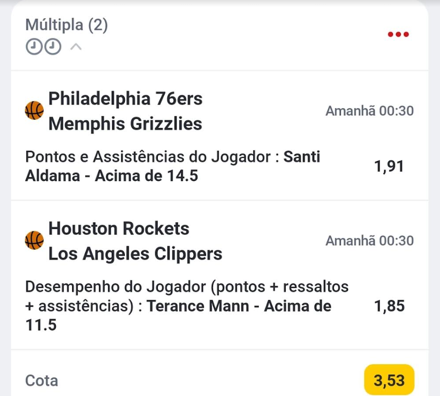 Para realizares esta aposta, vai ao jogo em questão na Betclic. Depois escolhe: Estatísticas » Performance » Desempenho do Jogador (pontos + ressaltos + assistências )