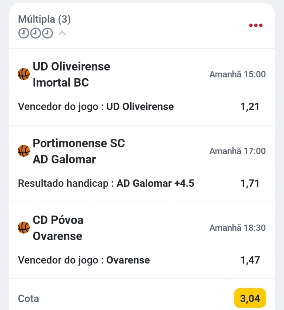 Apostas NBA LPB Aposta múltipla Jornada 15 da Liga Betclic Fevereiro 9, 2024Fevereiro 9, 2024 autores nbaportugal 0 Comments Aposta Liga Betclic, Aposta Múltipla, jornada 15, Liga Betclic 2023-24 Assiste a todos os jogos da NBA, da Liga Portuguesa de Basquetebol e da EuroLeague! Regista-te na Betclic com o promocode NBAPTBETS e ainda tens uma Aposta Sem Risco até 50€! Regista-te AQUI com o promocode NBAPTBETS e assiste a todos os jogos! Clica AQUI para te juntares ao nosso Grupo!
