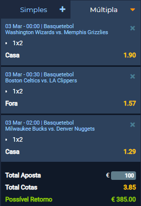 Aposta Múltipla NBA – 2 de Março – Bónus Aposta Segura!