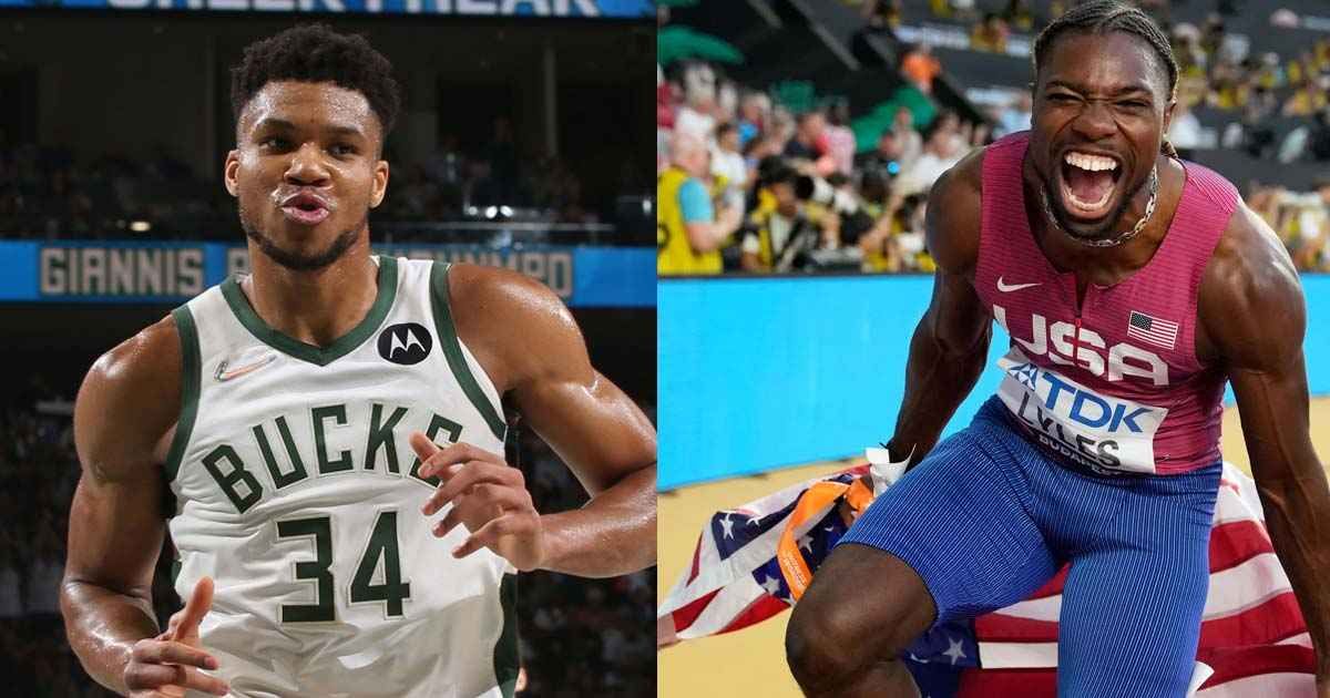 Giannis Antetokounmpo está do lado de Noah Lyles