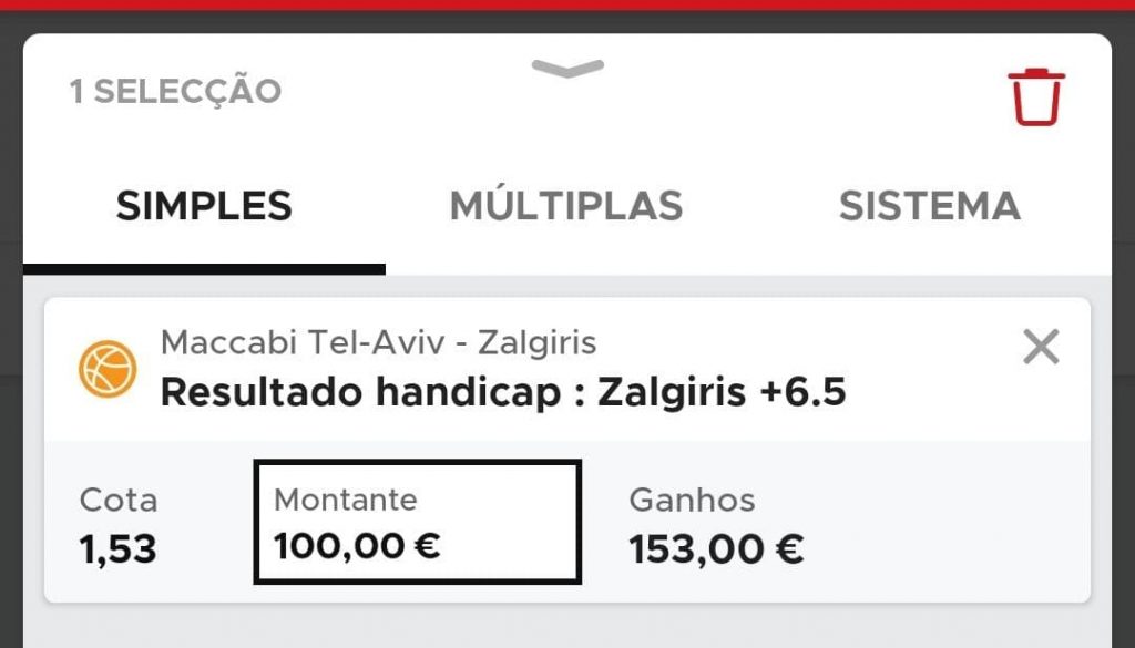 Handicap : Zalgiris +6.5 / 1.53 betclic.pt