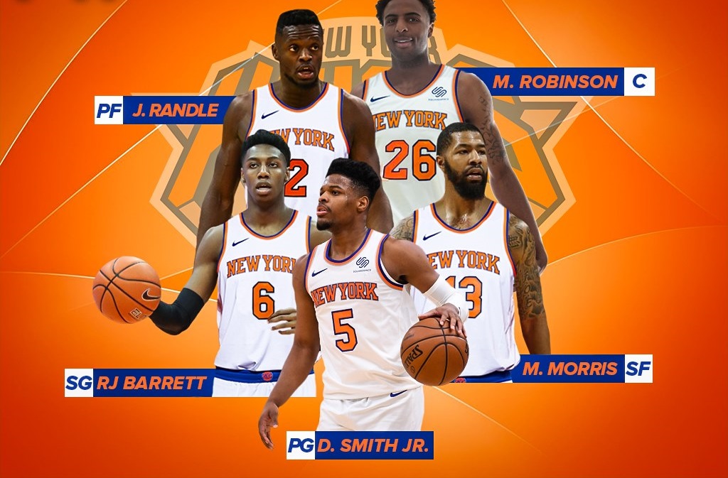 Jogadores de rotação: Bench: Frank Ntilikina, Elfrid Payton, Wayne Ellington, Allonzo Trier, Kevin Knox, Taj Gibson, Bobby Portis