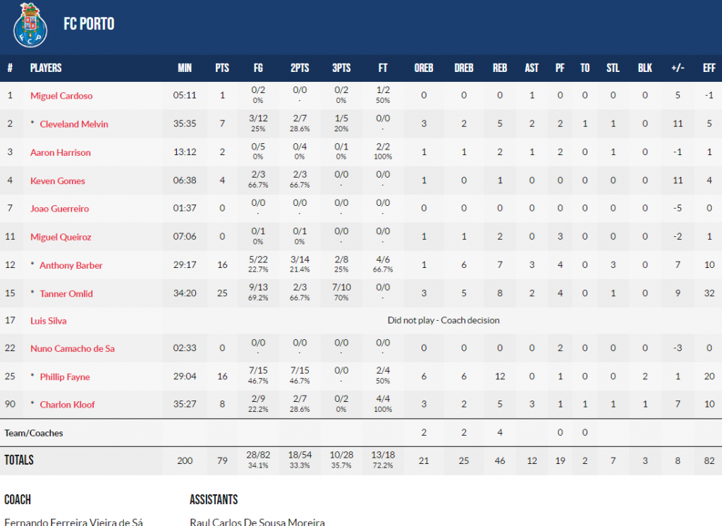 O Porto foi superior no lançamento de 3 pontos e nos lançamentos livres, o que provou ser essencial para esta vitória. Foram também superiores no aspeto defensivo, onde conseguiram 7 roubos de bola e provocaram 12 perdas de bola aos adversários.