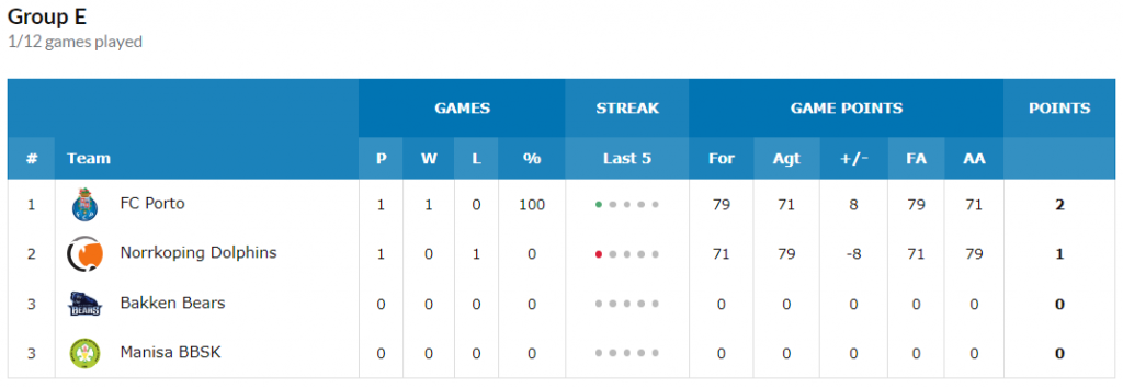 Os “dragões” jogaram fora, no terreno dos suecos do Norrkoping. Tivemos um encontro bastante renhido, num jogo com percentagens de lançamento baixas por parte das duas equipas. A equipa da casa até começou melhor, mas a partir do segundo parcial, o Porto assumiu a liderança do marcador e acabou por vencer por 71-79.