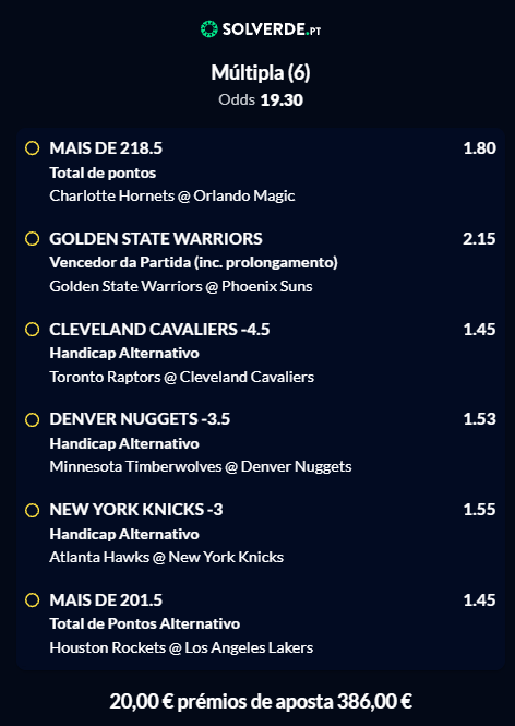 Chegamos à fase decisiva da NBA e mais uma vez trazemos os melhores palpites das apostas desportivas para o Play-In e para o Playoff. Para acederes a estes mercados exclusivos, regista-te na Solverde com o promocode NBAPT e nós iremos lançar os melhores palpites.