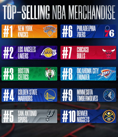 O lugar de Brunson é explicado pelo enorme mercado representado pelos Knicks e pelo fascínio que esta organização exerce. A equipa de New York também é a número 1 entre as equipas em termos de vendas, à frente dos Lakers e dos Celtics.